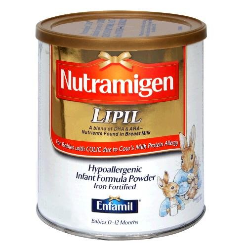 Enfamil Nutramigen Enfamil Nutramigen features Lipil which can help in the development of baby's motor skills during the extremely critical first year. Lipil has also been found to help improve a child's developing vision. This Enfamil formula is specially designed to help in children with colic. Enfamil Nutramigen can help resolve colic symptoms. But it doesn't have to be scary for the child. It is possible that baby's discomfort is from an allery to a protein found in cow's milk based formula. Enfamil Nutramigen is a hypoallergenic infant formula. Some of the problems this Enfamil formula can help with problems such as diarrhea, breathing difficulty, hives, a kind of rash known as atopic eczema or dermatitis. A 16 oz. can of baby formula from Enfamil can yield up to 113 fluid ounces. Please consult with a doctor before using Enfamil Nutramigen.