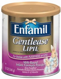 Enfamil Gentlease Lipil Enfamil Gentlease Lipil is a premier baby formula which assist in just about all aspects of the baby's development. Enfamil Gentlease is a unique design for babies with fussiness or gas. This Enfamil baby formula has a special balance of carbohydrates with reduced lactose, designed for babies with fussiness or gas. One of the great features of the Enfamil formula is that it combines a blend of DHA and ARA which are important nutrients found naturally in breast milk. This Enfamil baby formula is a great supplement for parents who are breast feeding. This baby formula from Enfamil also improves mental development. Babies showed improved brain development on a standardized mental development test which assessed skills such as memory and problem solving. The Enfamil baby formula also improves eye development as babies see clearer, one line better on a standard eye chart, the longer Enfamil Gentlease Lipil is used. This baby formula from Enfamil formula also helps to improve and maintain immune cells and includes antioxidants which protect the immune cells.